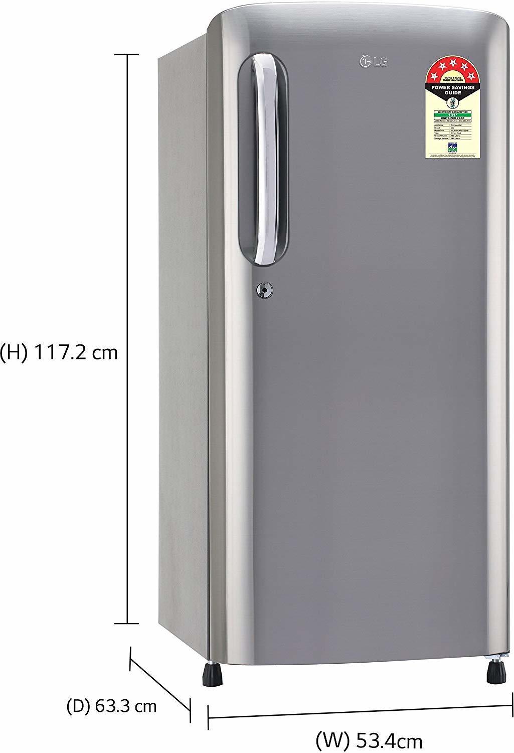 Lg 190 L 5 स्टार ( 2019 ) डायरेक्ट कूल सिंगल डोर रेफ्रिजरेटर (Gl-b201apzy, शाइनी स्टील, इन्वर्टर कंप्रेसर)