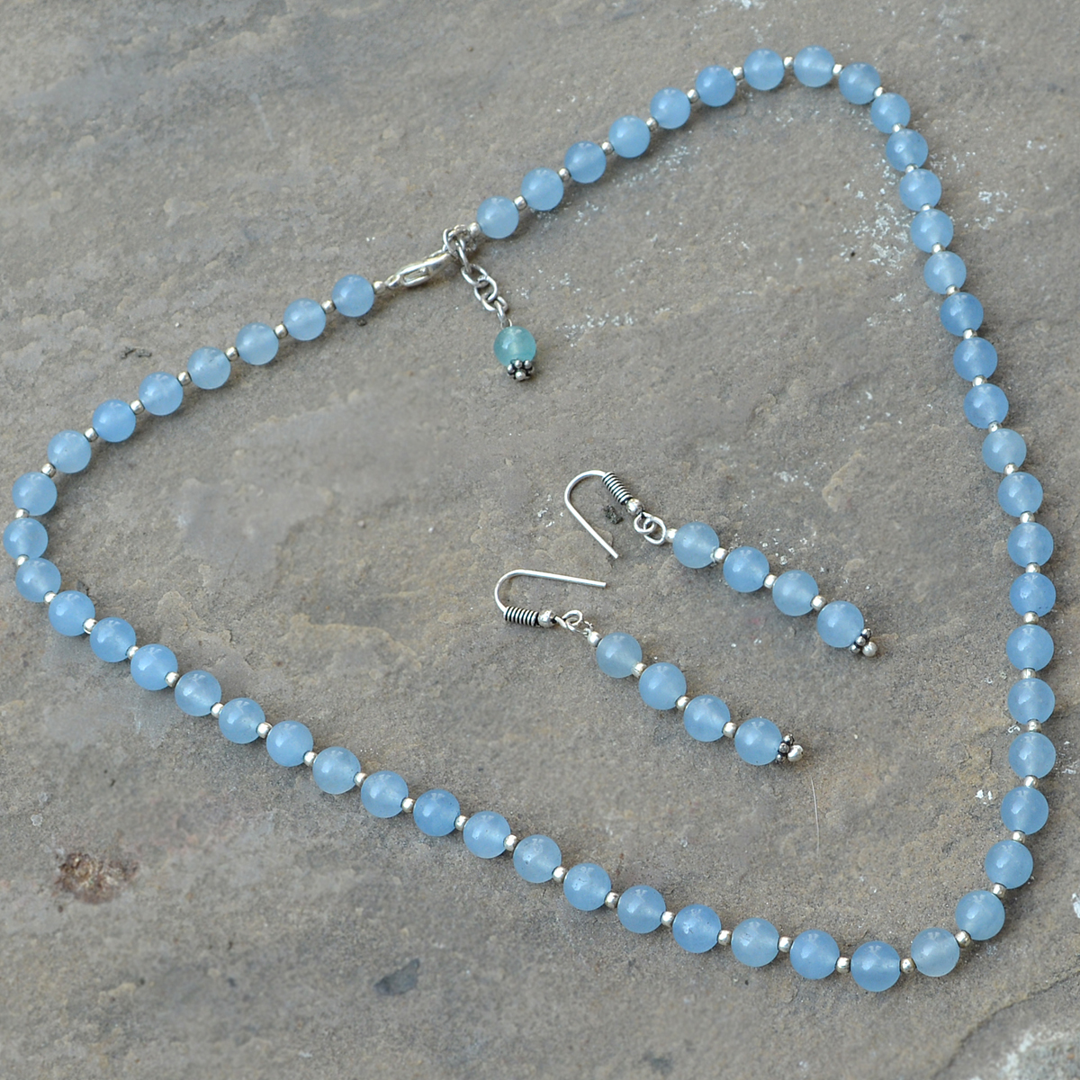 Explore in english - Light Blue Quartz Silver Necklace Set PG-156662