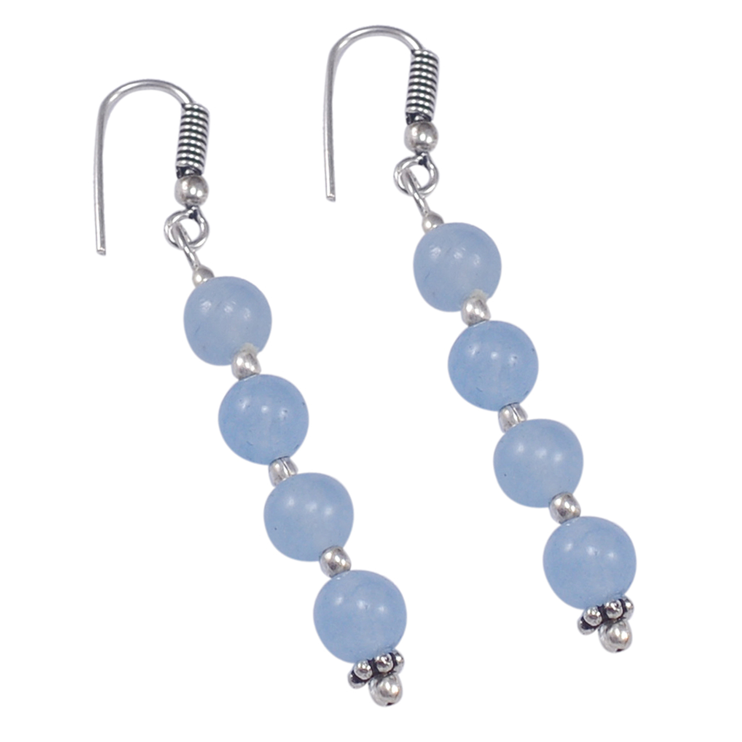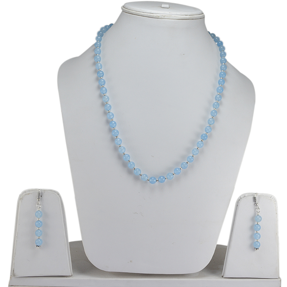 लाइट ब्लू क्वार्ट्ज़ सिल्वर नेकलेस सेट Pg-156662 साइज़: 0.6x47 Cm.