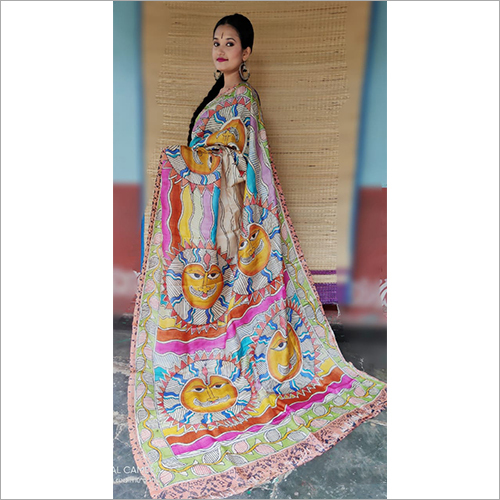 हल्के रंग की मधुबोनी पेंटेड प्लेन टस्सूर साड़ी