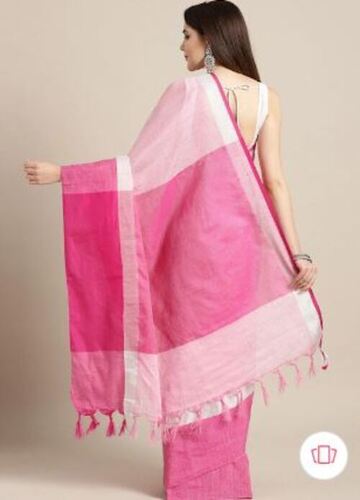 चेक्ड कैज़ुअल वियर महिलाओं के लिए हल्की गुलाबी और सफ़ेद आरामदायक हल्की प्योर कॉटन साड़ी
