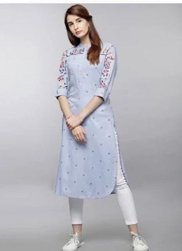 पैंट के साथ यह महिलाओं के लिए प्रिंटेड कॉटन ब्लेंड स्ट्रेट कुर्ता हर रोज़ कैज़ुअल वियर के लिए एकदम सही है। हल्के वज़न का फ़ैब्रिक इसे सभी मौसमों के लिए ज़रूरी बनाता है, खासकर गर्मियों और मानसून के मौसम के लिए। पूरा लुक बनाने के लिए आप इसे अपनी पसंदीदा जींस या चिनोस के साथ पहन सकते हैं। पैंट सेट के साथ यह स्काई ब्लू कॉटन ब्लेंड कुर्ता शाम की सैर के लिए एक आदर्श विकल्प है। यह वज़न में हल्का है और पहनने में आरामदायक है। गर्मियों के लिए आदर्श, यह सेट नवीनतम फैशन ट्रेंड को दर्शाता है हमारा स्काई ब्लू कुर्ता कॉटन और स्पैन्डेक्स का मिश्रण है। कुर्ता मैचिंग पैंट के साथ आता है। आप इस सेट को लोफ़र्स या हील्स के साथ पहन सकते हैं, दोनों ही खूबसूरत दिखेंगे.
