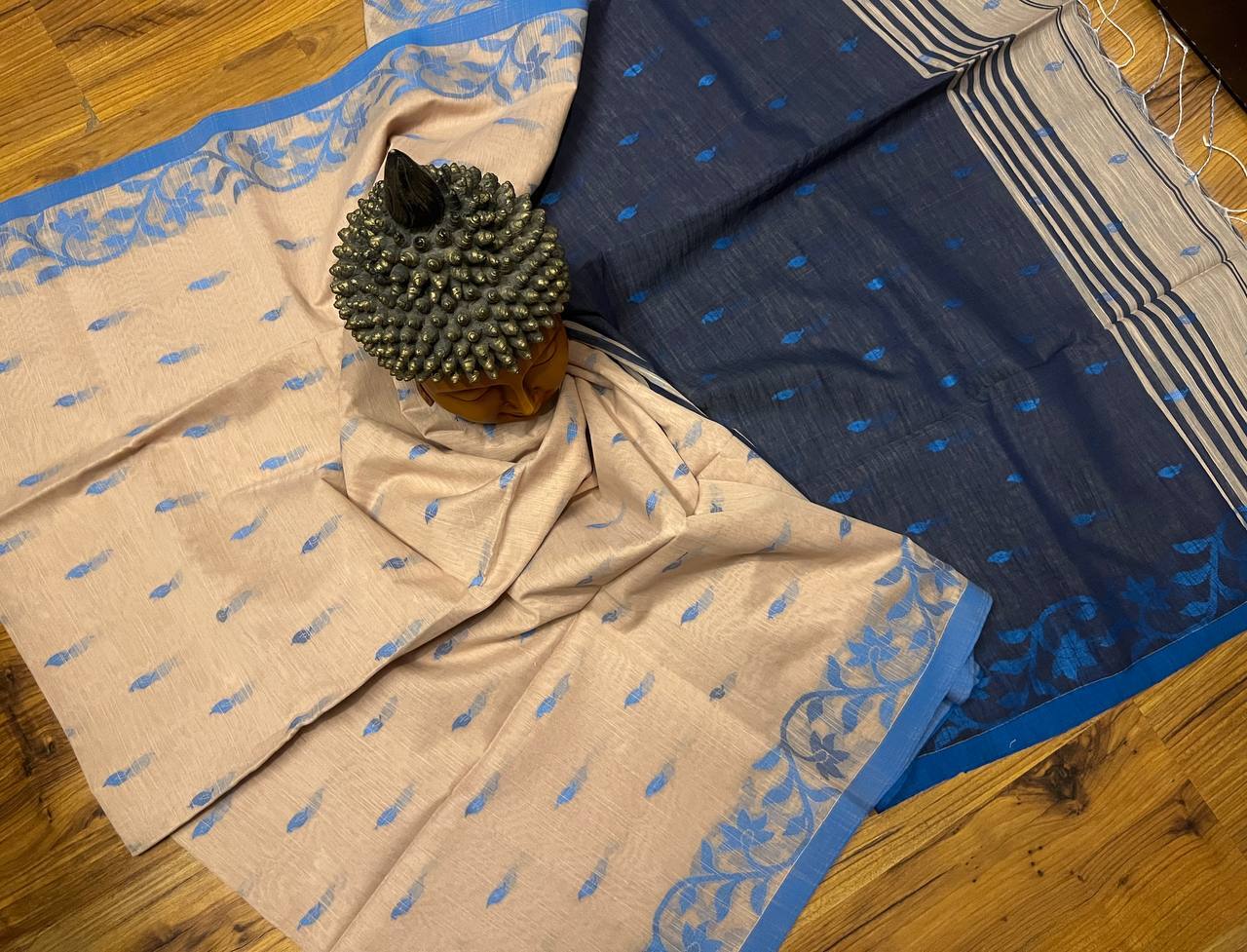 कॉटन लिनन हैंडलूम सिल्क साड़ी