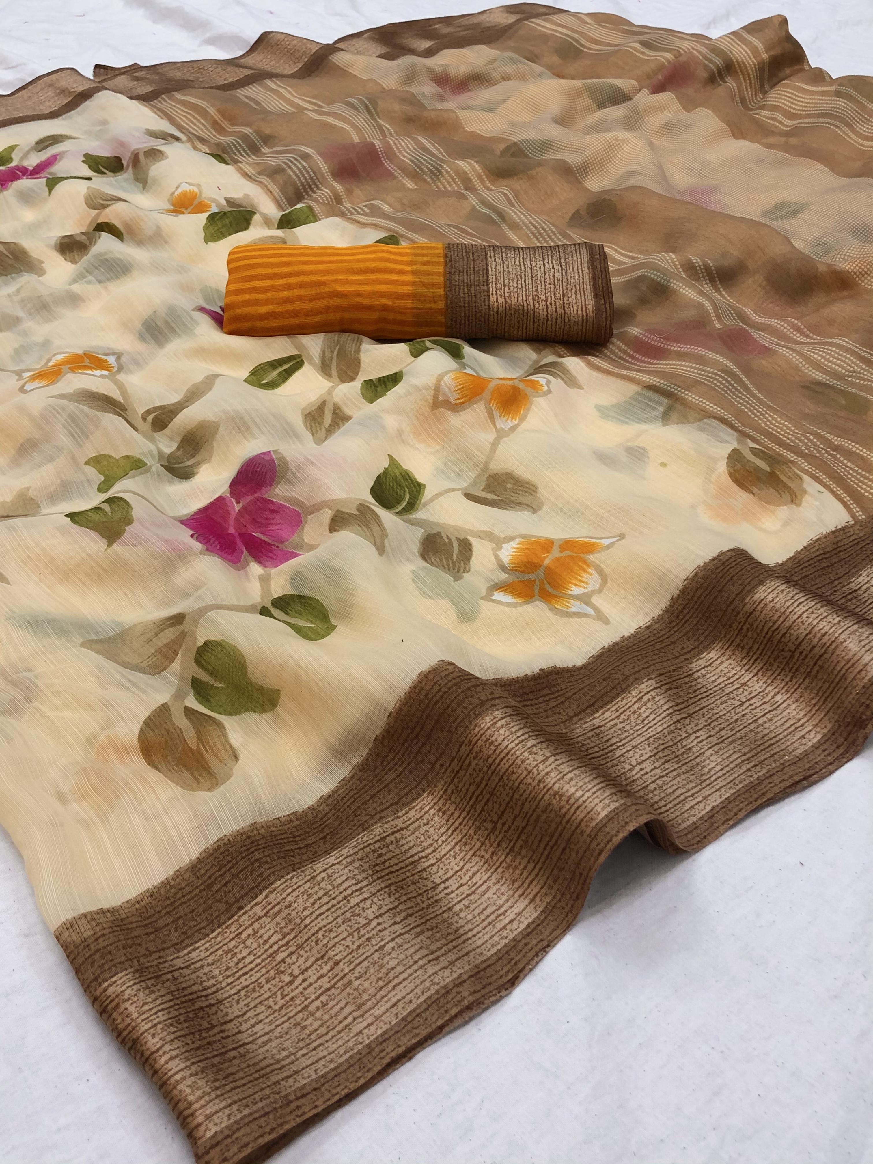 साटन पट्टा के साथ मल्टी लिनन साड़ी