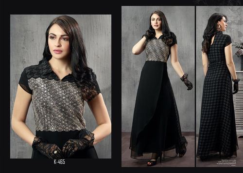 लॉन्ग डिज़ाइनर ब्लॉक जॉर्जेट कुर्ती