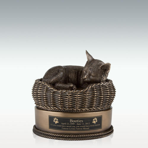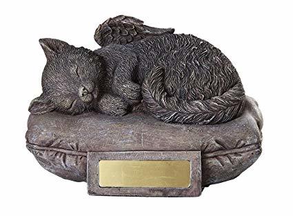 काले लंबे बालों वाली बिल्ली की मूर्ति श्मशान कलश उत्कीर्णन योग्य