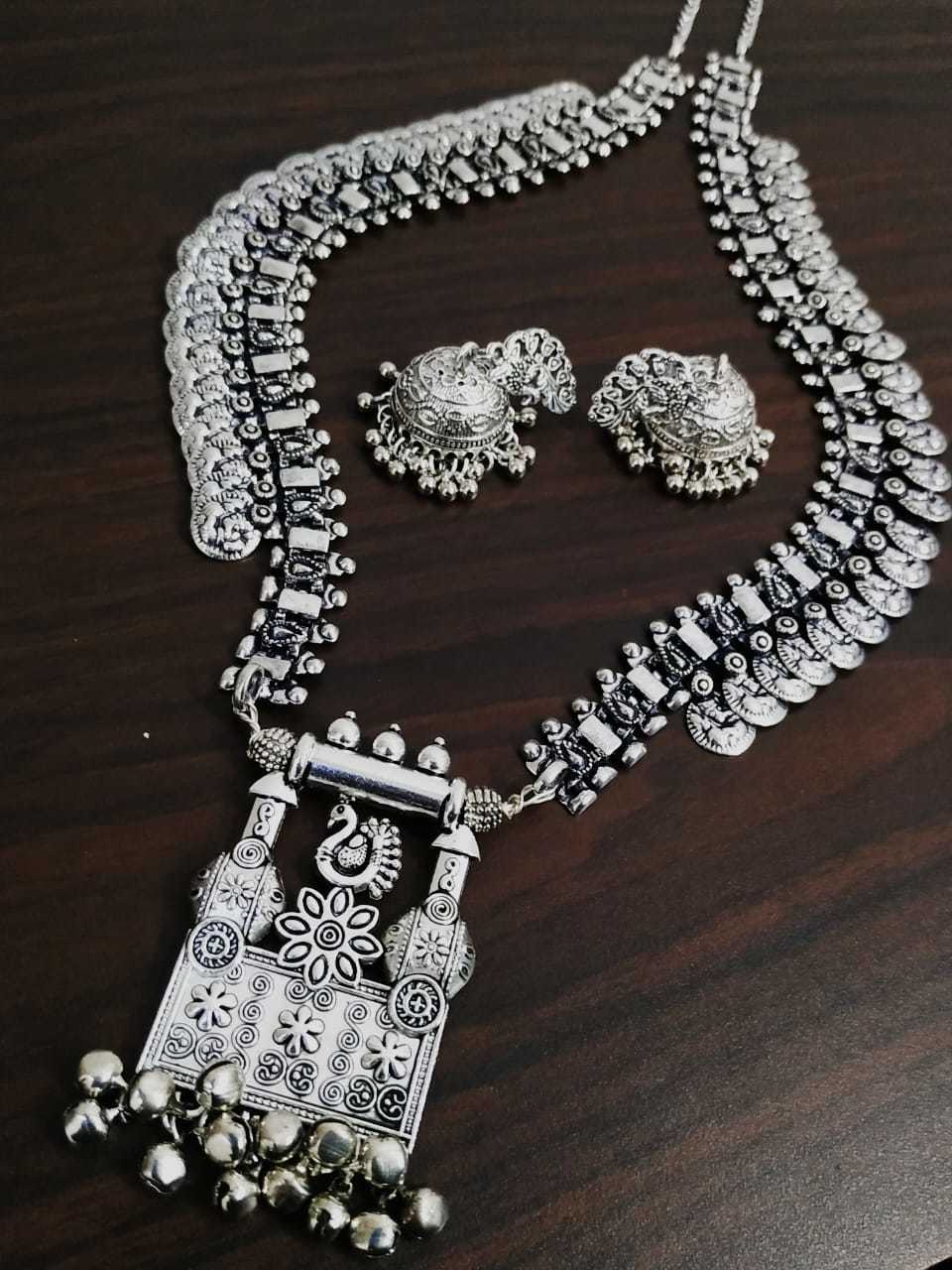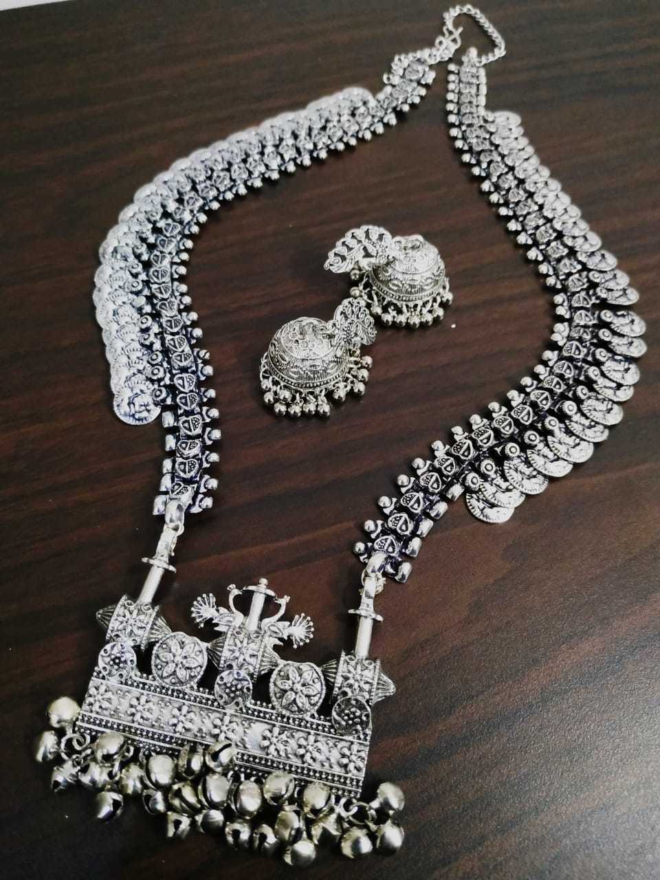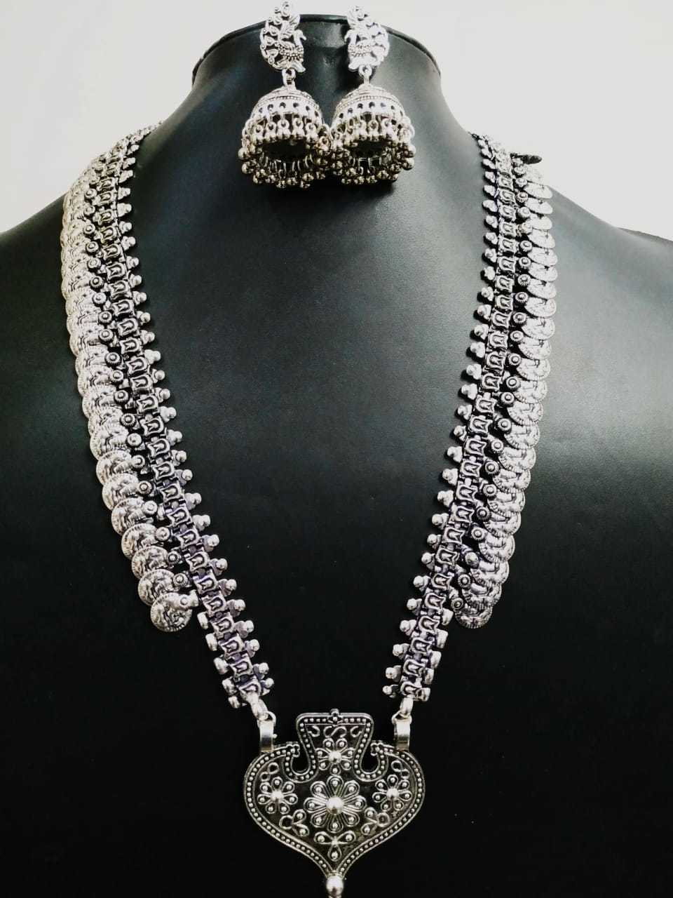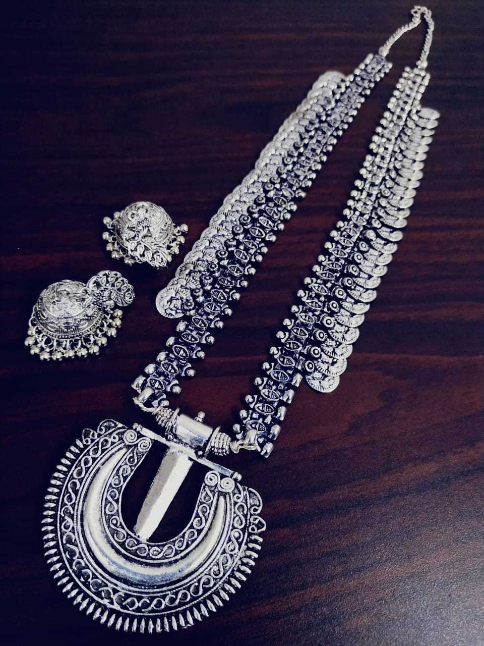 लॉन्ग ऑक्सीडाइज़्ड कॉइन टेम्पल नेकलेस सेट