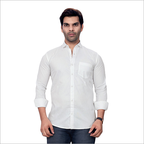 व्हाइट मेन्स कॉटन स्लिम फिट शर्ट्स