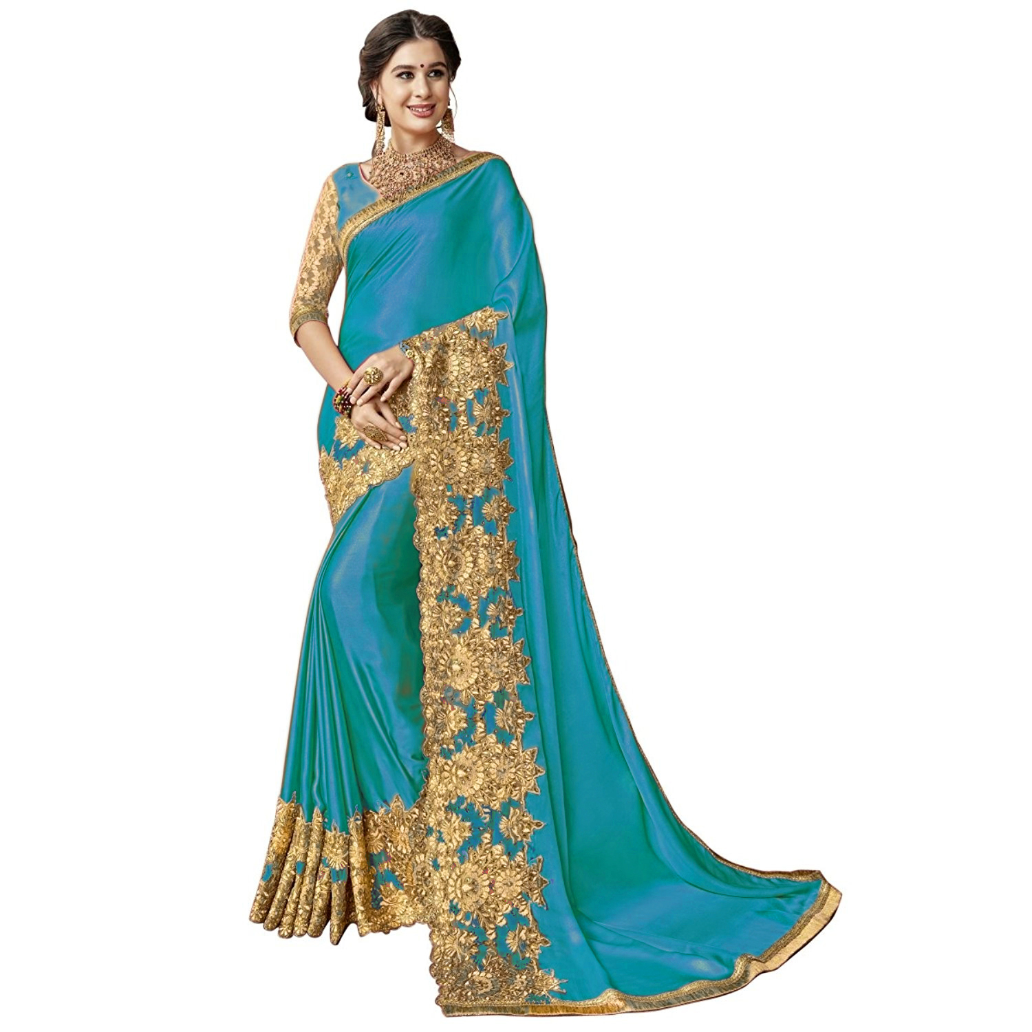 Explore in english - Lycra Silk Blend Embroidered Work Saree