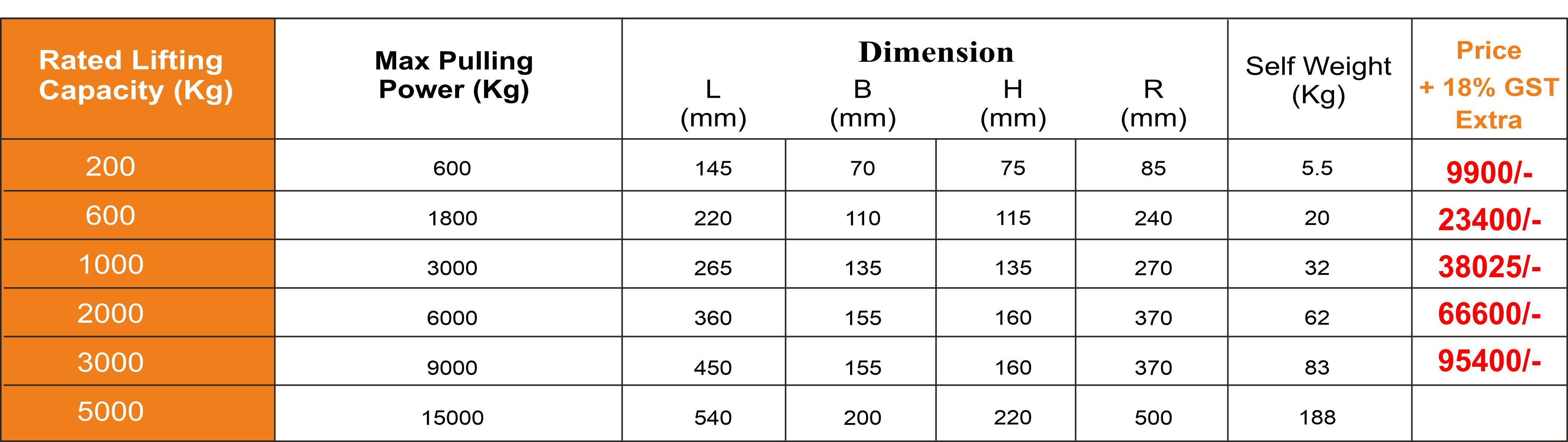 | मैक्स। लिफ्टिंग लोड | 200 किलोग्राम (kg) |