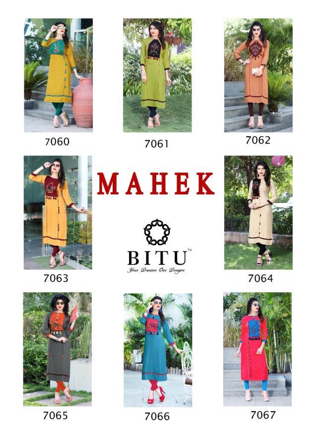 Explore in english - Mahek By Bitu Rayon With Embroidery Worked Kurtis