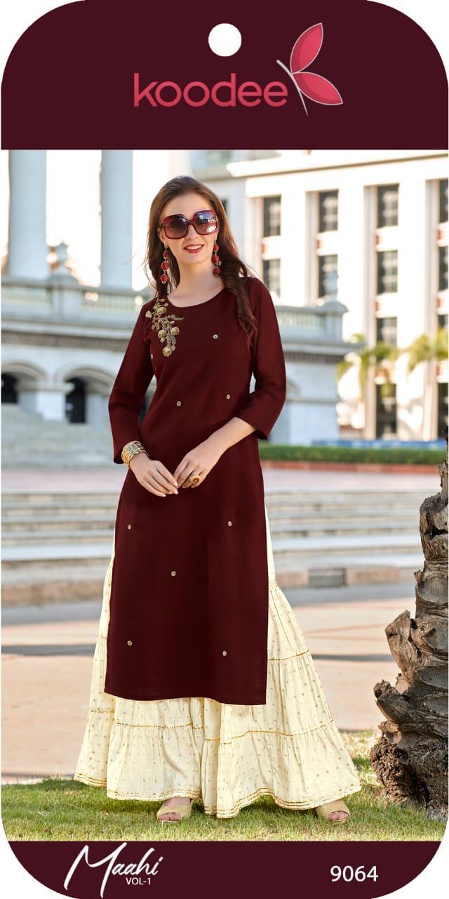 कैटलॉग के अनुसार माही वोल-1 व्होसेल डिज़ाइनर कुर्ती