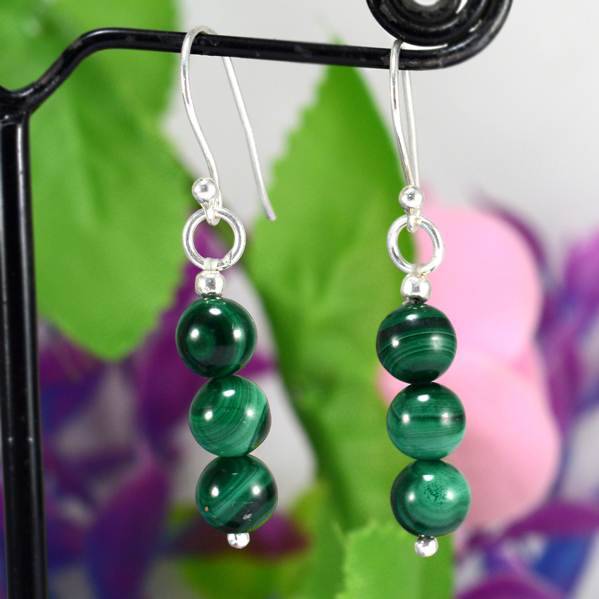 Explore in english - Malachite Gemstone Silver Earring PG-156395