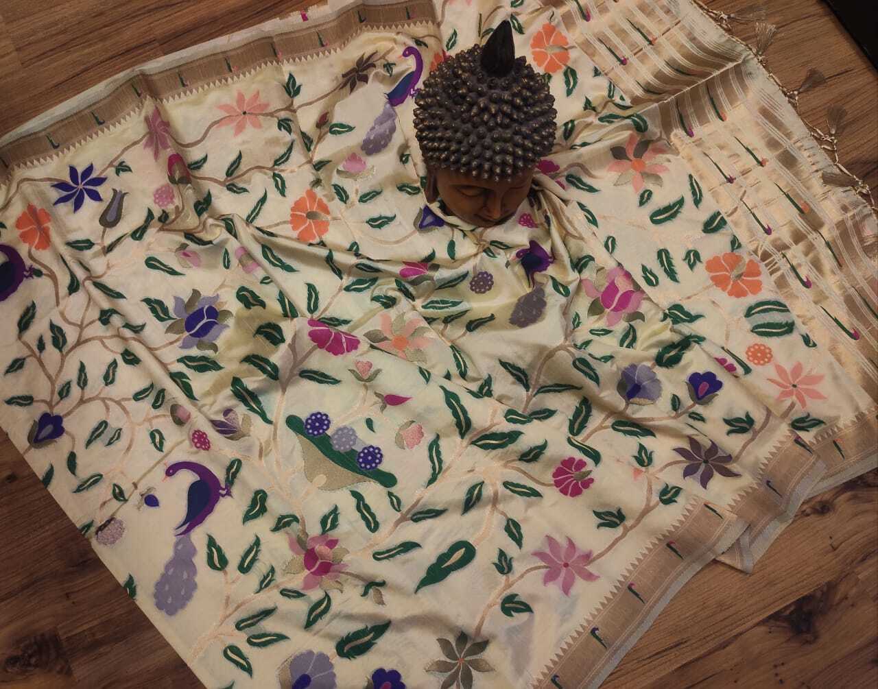 हाफ व्हाइट मनोबंगडी पैठानी सिल्क साड़ी