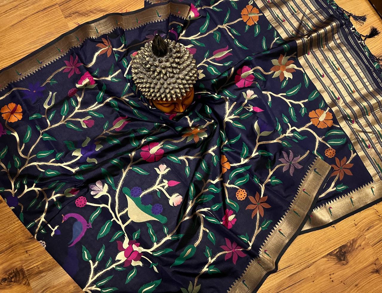 ब्लैक मनोबंगडी पैठानी सॉफ्ट सिल्क साड़ी