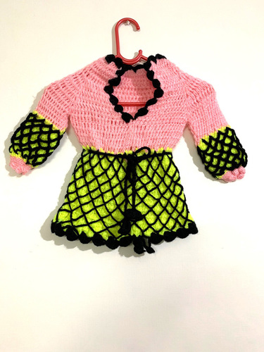 मैरून और फ्लोरोसेंट हरा हाथ से बुना हुआ स्वेटर