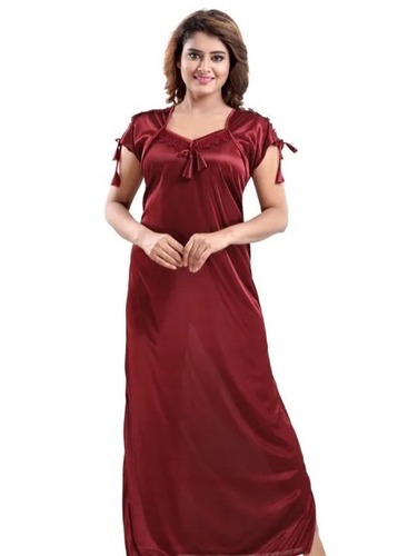 महिलाओं के लिए मैरून मल्टी कलर आरामदायक और धोने योग्य फैंसी साटन नाइटी