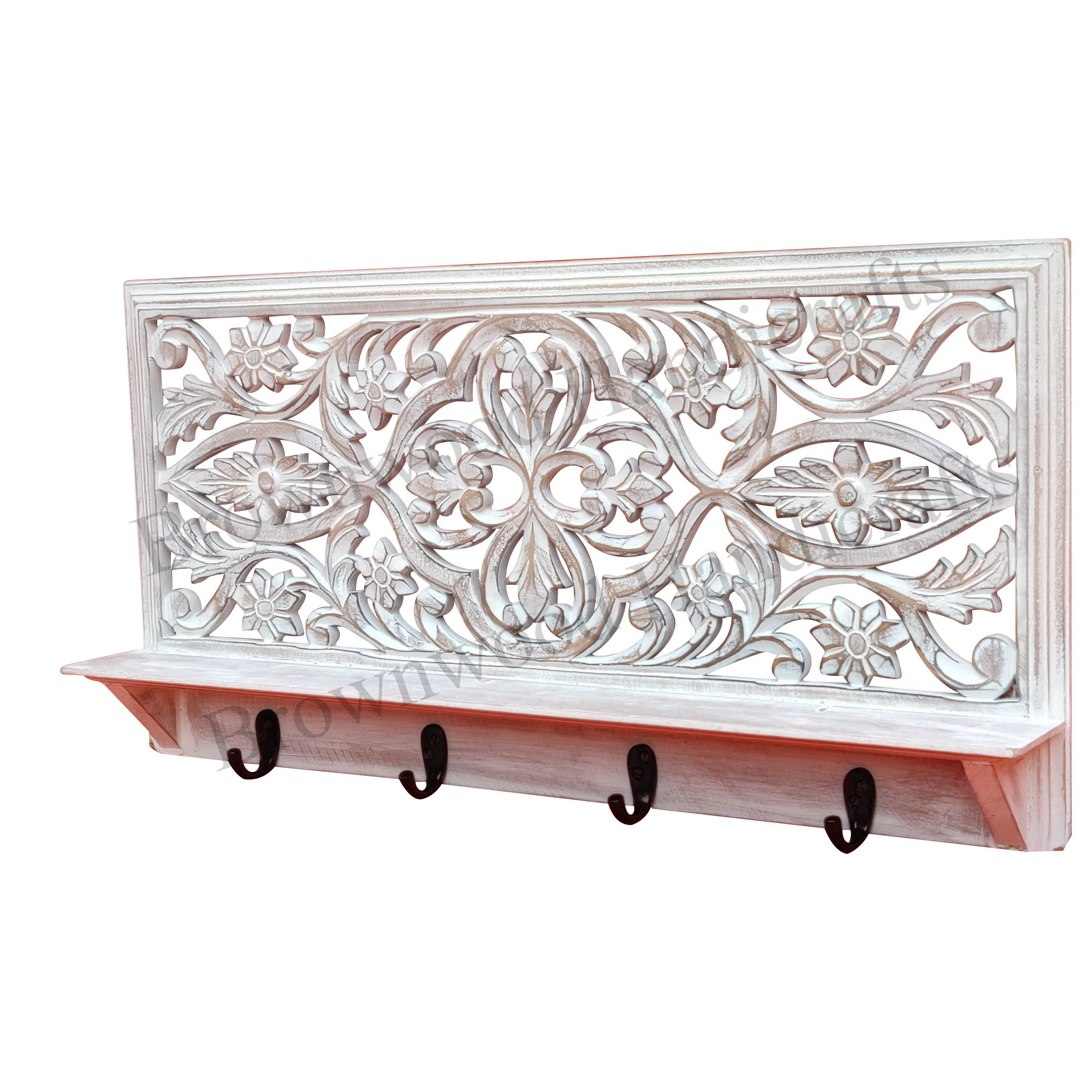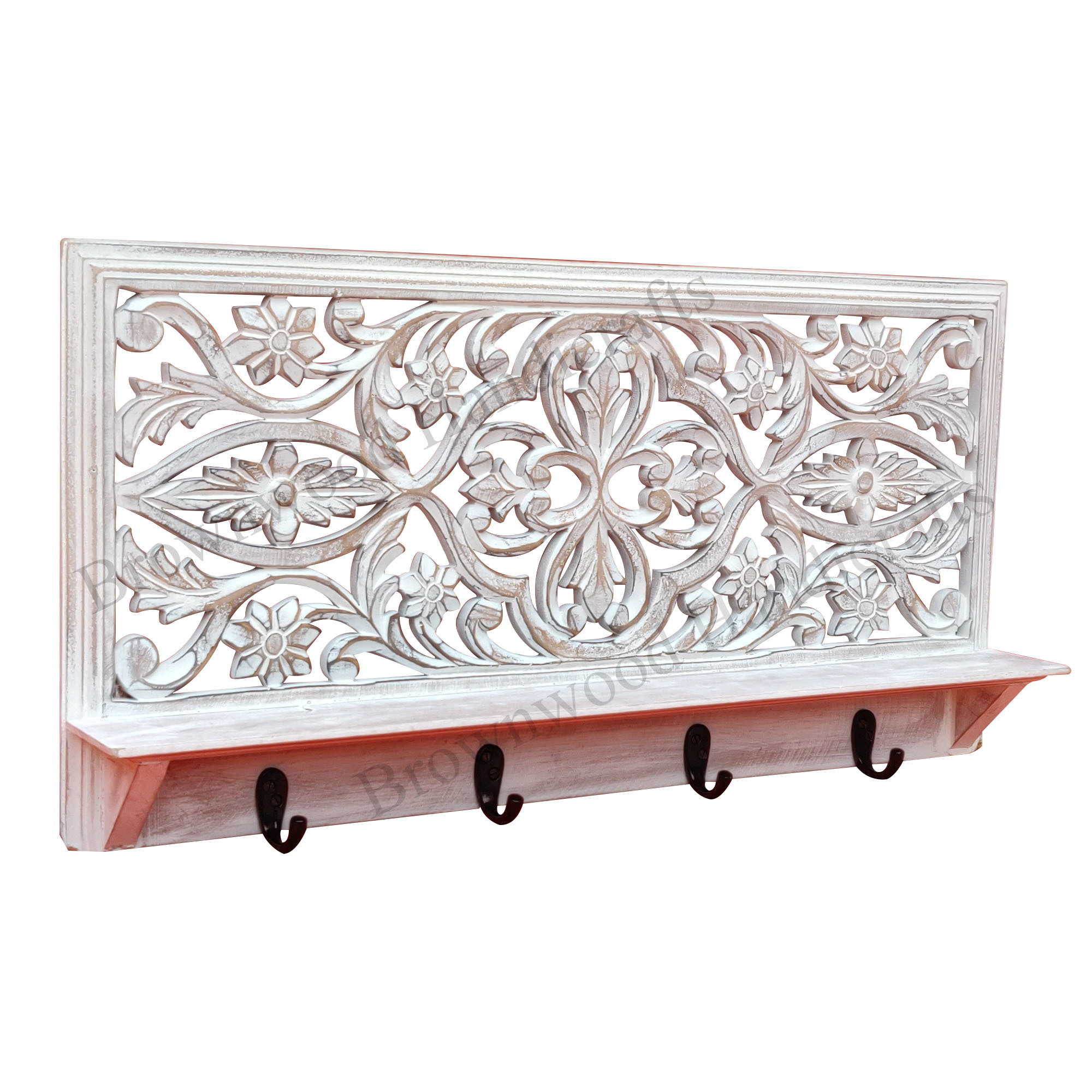 एमडीएफ लकड़ी की नक्काशीदार दीवार के हुक का आकार: 24 X 12 X 3.5 इंच