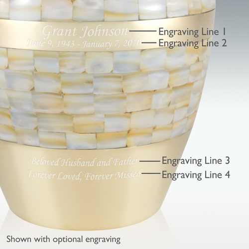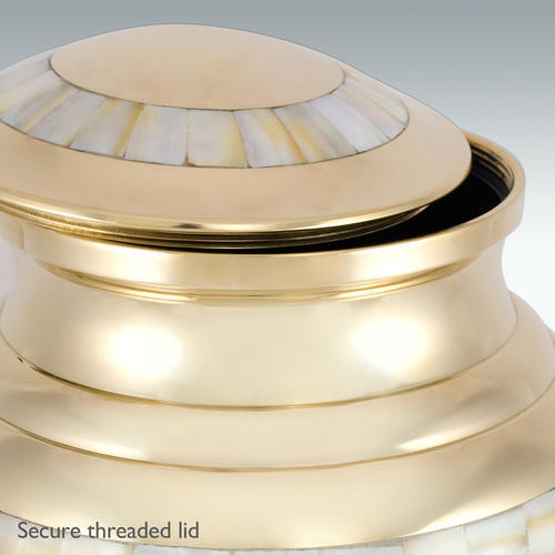 गोल्ड मीडियम ब्रास मदर ऑफ़ पर्ल श्मशान कलश उत्कीर्णन योग्य