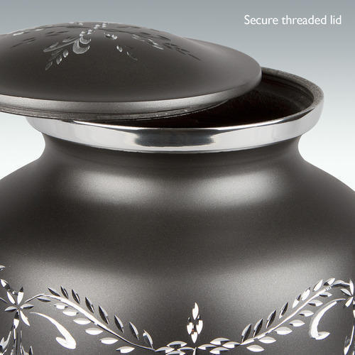 काला मध्यम फैंसी फ्लोरिश श्मशान कलश - उत्कीर्णन योग्य