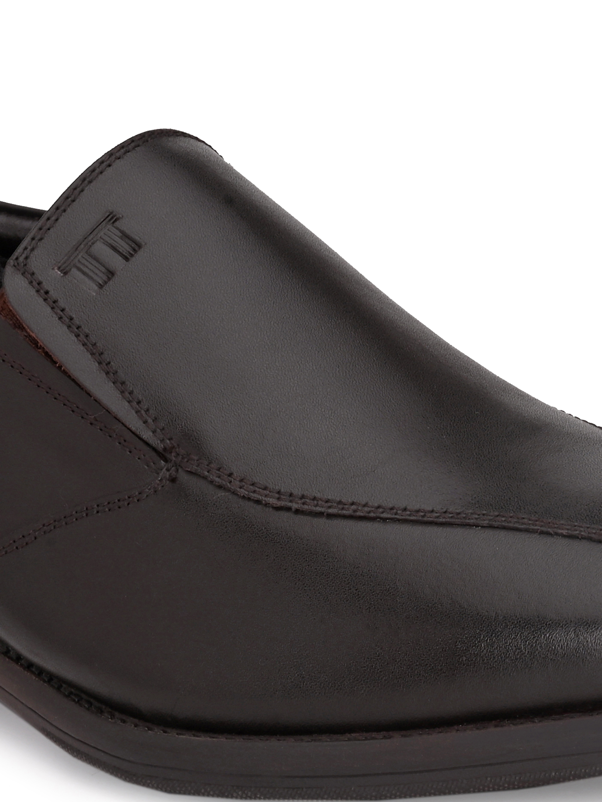 Explore in english - Men Brown Leather Formal Slip On Shoes