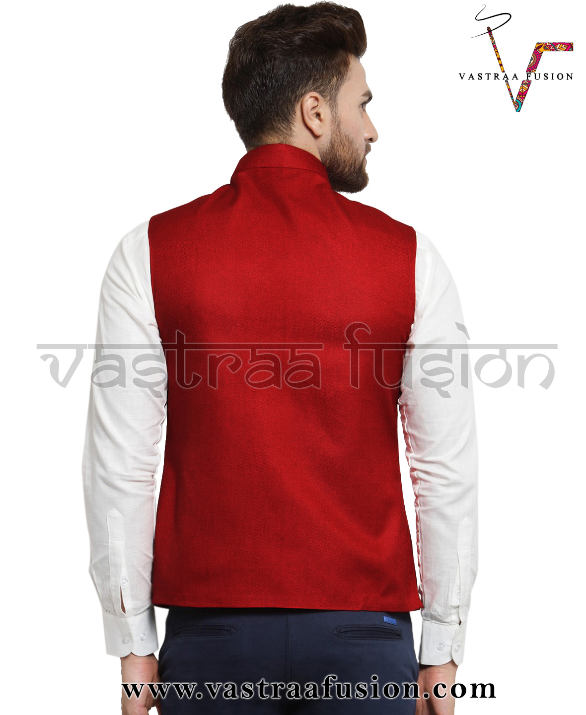 पुरुषों के लिए प्लेन फेस्टिव वियर नेहरू जैकेट - लाल रंग