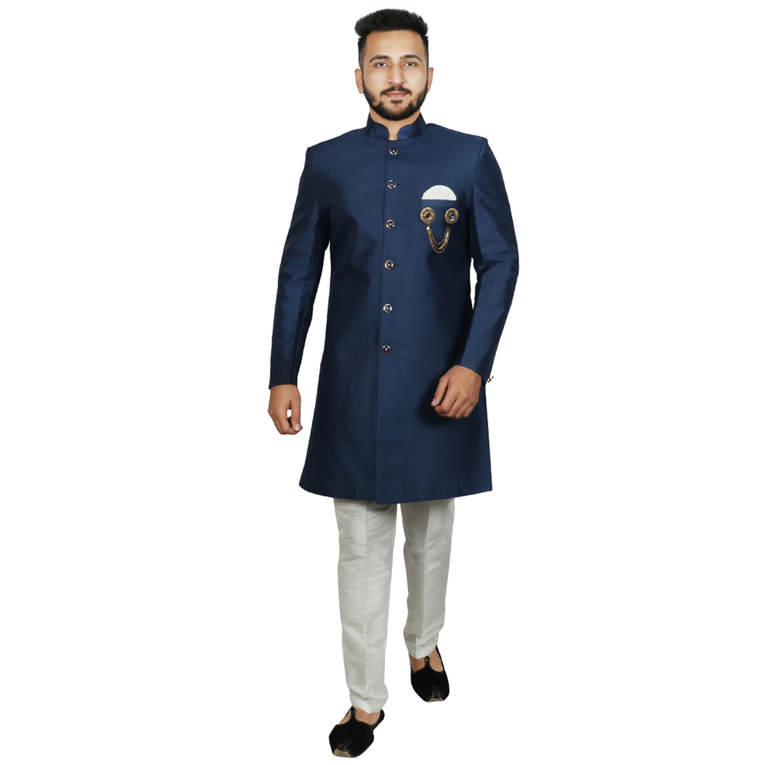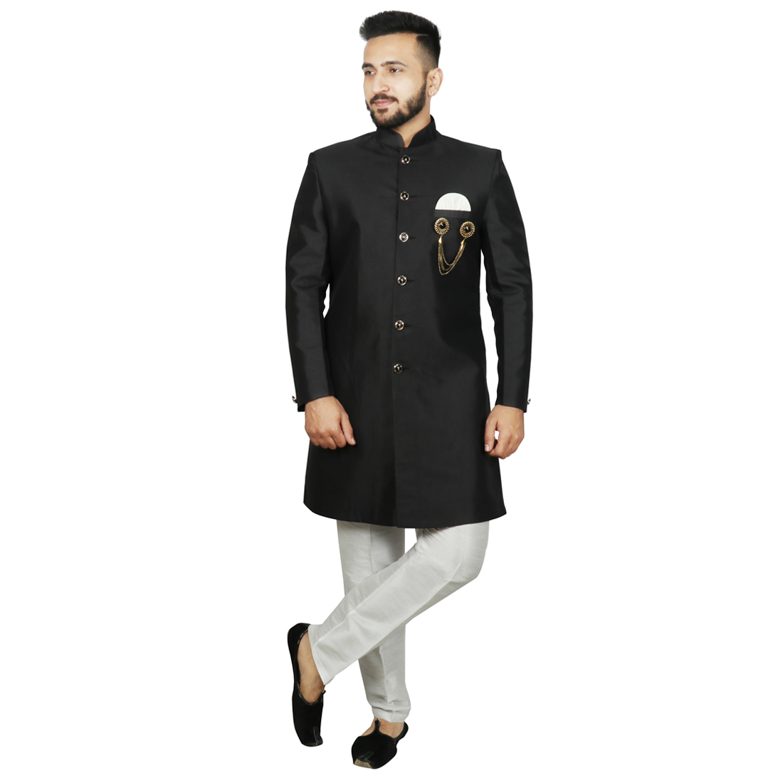 ब्लैक मेन सॉलिड इंडो शेरवानी