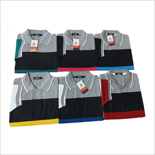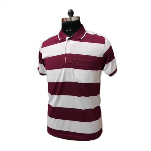 पुरुषों की कॉलर नेक स्ट्राइप्ड टी-शर्ट