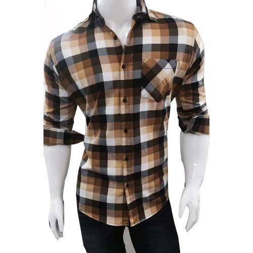 पुरुषों की क्विक ड्राई फुल स्लीव और ब्राउन प्लेन कॉटन कैज़ुअल शर्ट कैज़ुअल और कैज़ुअल वियर के लिए