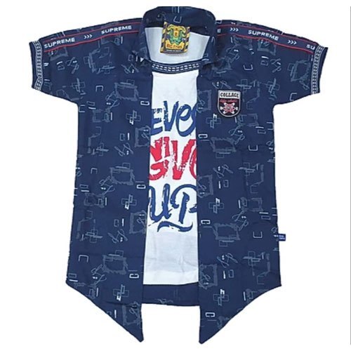 गहरे नीले रंग के साथ काला पुरुषों की प्रिंटेड शॉर्ट स्लीव पोलो नेक स्टाइलिश लुक प्योर कॉटन टी शर्ट