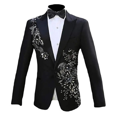 Explore in english - Mens Tuxedo One Button Stage Clothes Sequin Glitter Blazer Jacket