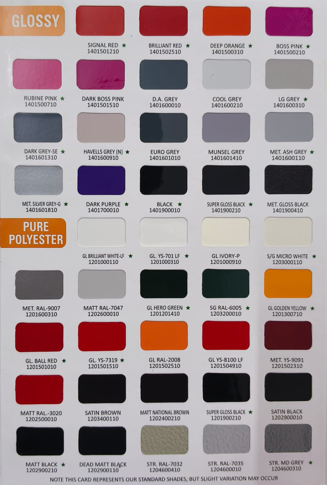 मेटाबॉंड पाउडर कोटिंग शेड कार्ड