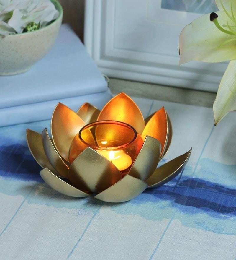Explore in english - Metallic Lotus Shaped Tealight Candle Holder