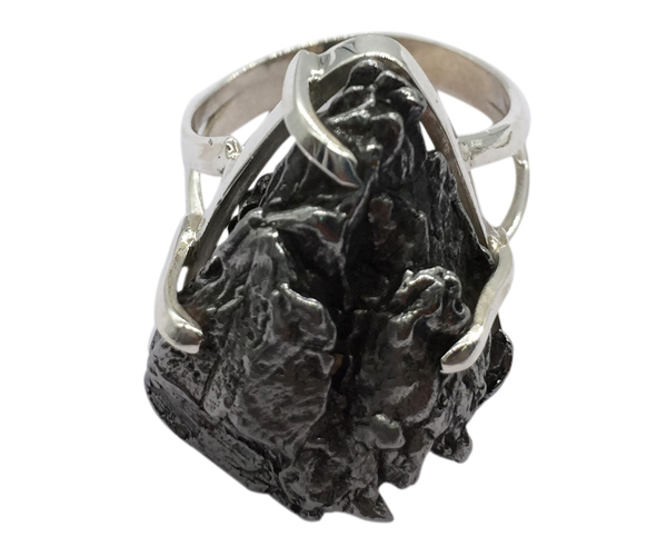 ग्रे उल्कापिंड स्टोन 925 सिल्वर रिंग