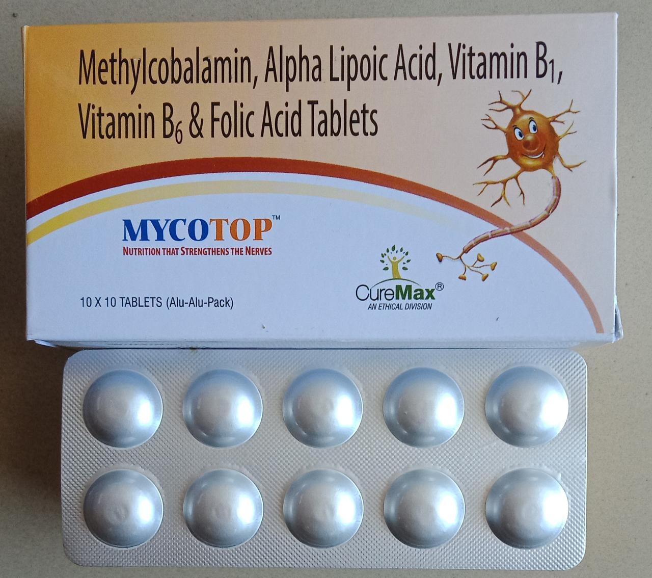 मिथाइलकोबालामिन 1500 एमसीजी, अल्फा लिपोइक एसिड 100 मिलीग्राम, फोलिक एसिड 1.5 मिलीग्राम, विटामिन बी 6 3 मिलीग्राम और थायमिन 10 मिलीग्राम स्वास्थ्य पूरक