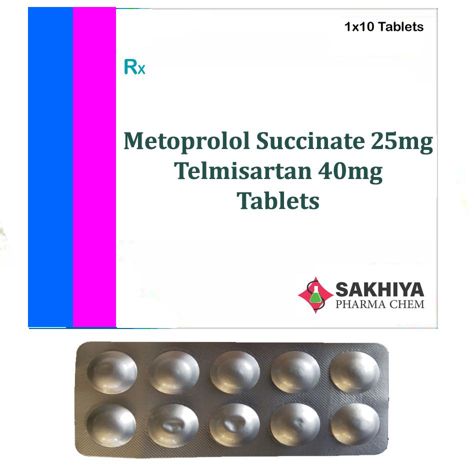 | सामग्रियां | Metoprolol Succinate 25mg + Telmisartan 40mg Tablets |