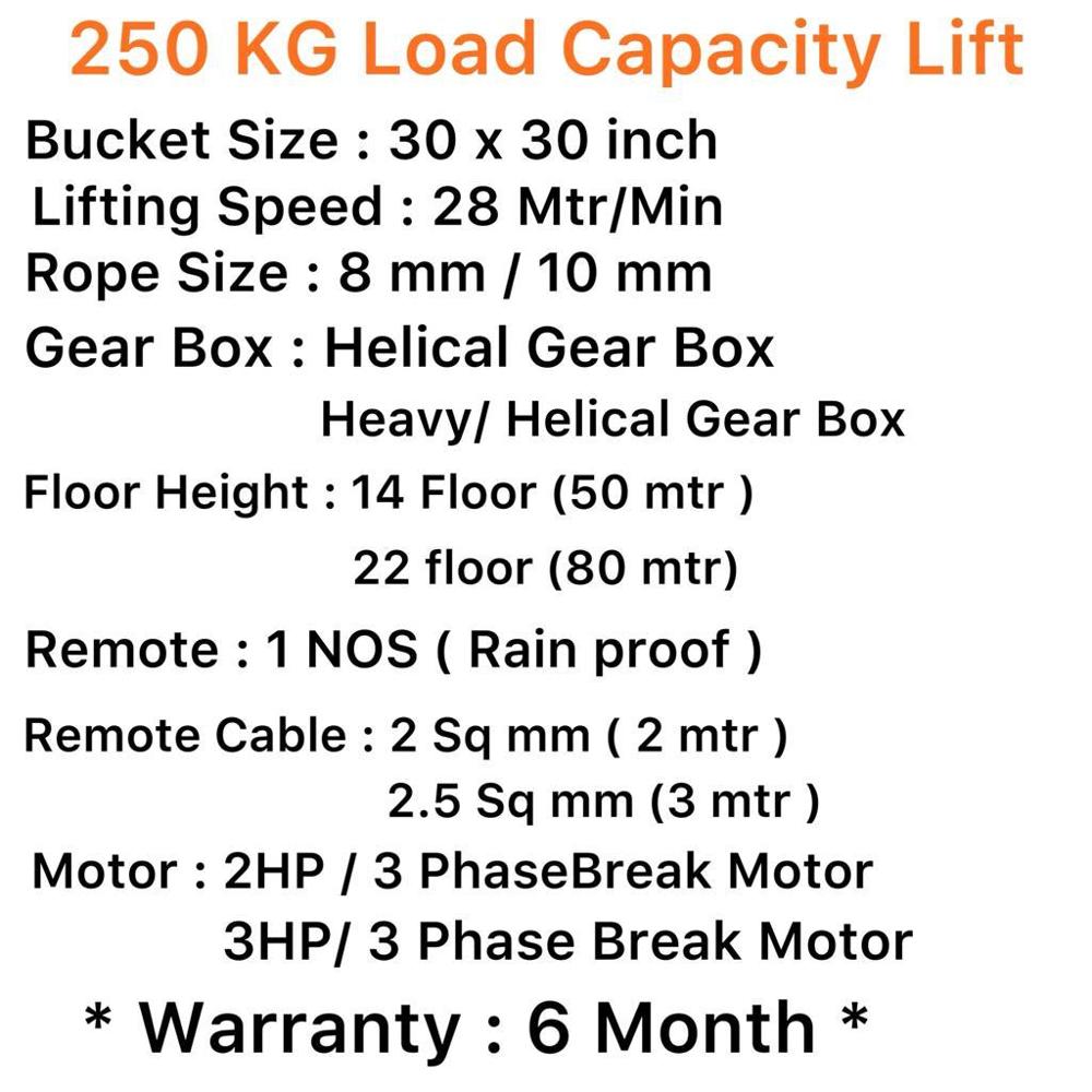 | उठाने की क्षमता | 250 किलोग्राम (kg) |