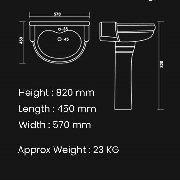 पेडस्टल के साथ व्हाइट मिनी स्टर्लिंग वॉश बेसिन