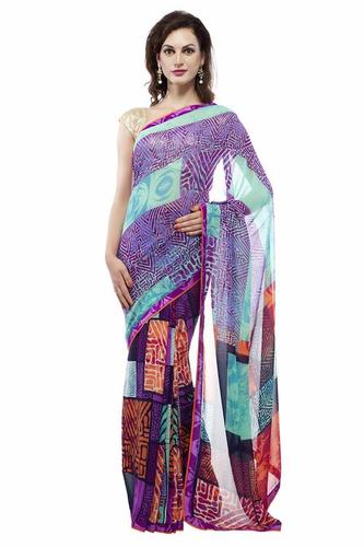 मिस्ट ग्रीन कला जॉर्जेट मुद्रित साड़ी