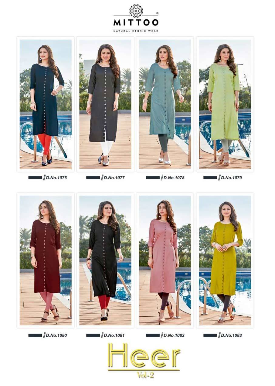 Explore in english - Mittoo Heer Vol-2 Rayon Slit Kurti Catalog