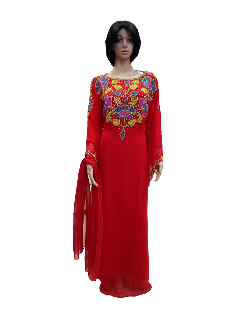 आधुनिक हाथ कढ़ाई कफ्तान गाउन