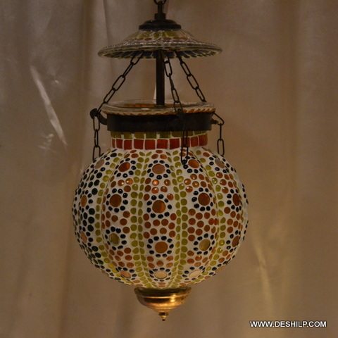 मल्टीकलर मोज़ेक बीड्स ग्लास वॉल हैंगिंग लैंप
