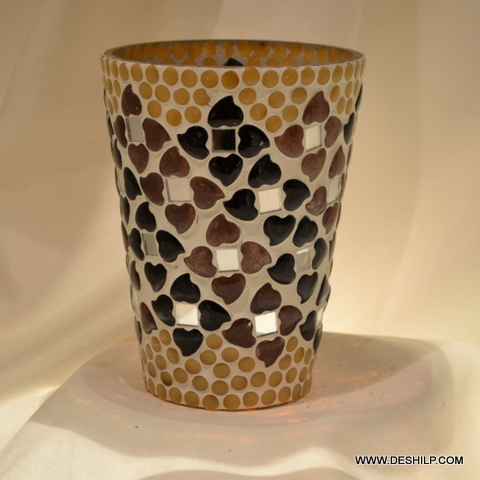 प्राचीन नकली मोज़ेक हस्तनिर्मित ग्लास मोमबत्ती