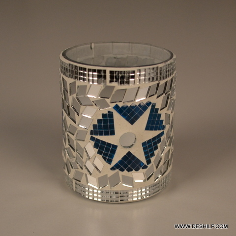 हस्तनिर्मित मोज़ेक ग्लास मोमबत्ती धारक