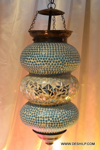 स्काई ब्लू मोज़ेक हस्तनिर्मित ग्लास वॉल हैंगिंग