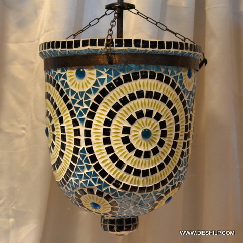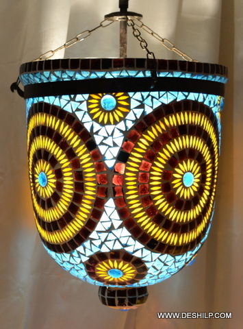 नीला और पीला मोज़ेक हस्तनिर्मित ग्लास वॉल हैंगिंग