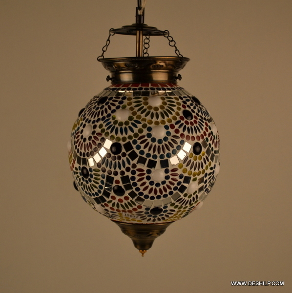 मल्टीकलर मोज़ेक हैंगिंग लैंप चंदेलियर मोज़ेक होम हैंगिंग