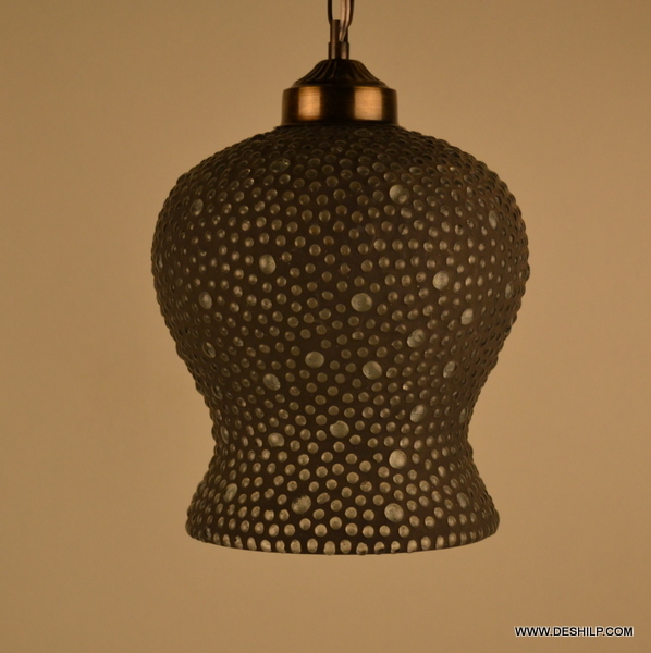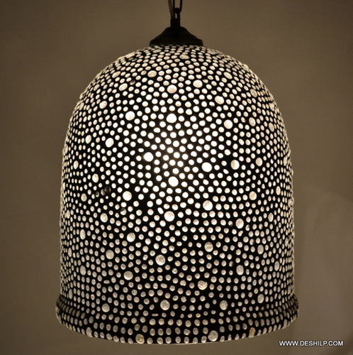 ब्लैक एंड सिल्वर मोज़ेक पेंडेंट हैंगिंग लैंप विंटेज एंटीक हैंगिंग