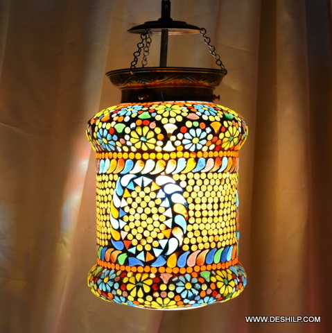 Explore in english - Mosaic Pendant Hanging Lamp Vintage Antique Hanging