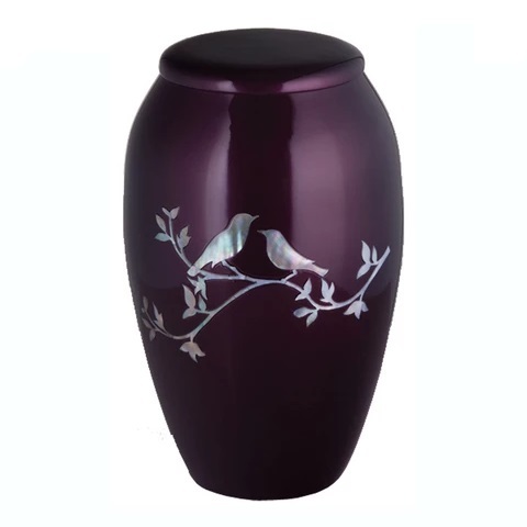 बरगंडी या लाल मदर ऑफ़ पर्ल मॉर्निंग डोव्स श्मशान कलश-नया